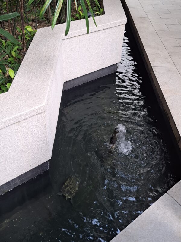 人が多くてあまり撮影できませんでしたが、プールは2種類あり。水路にカメが泳いでいました。